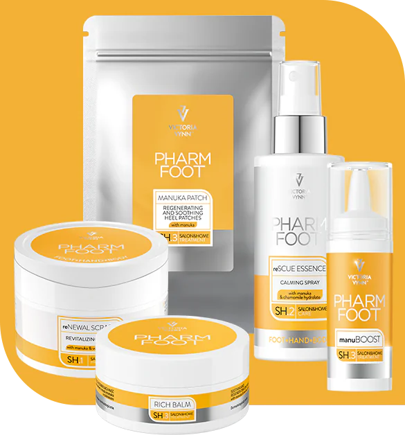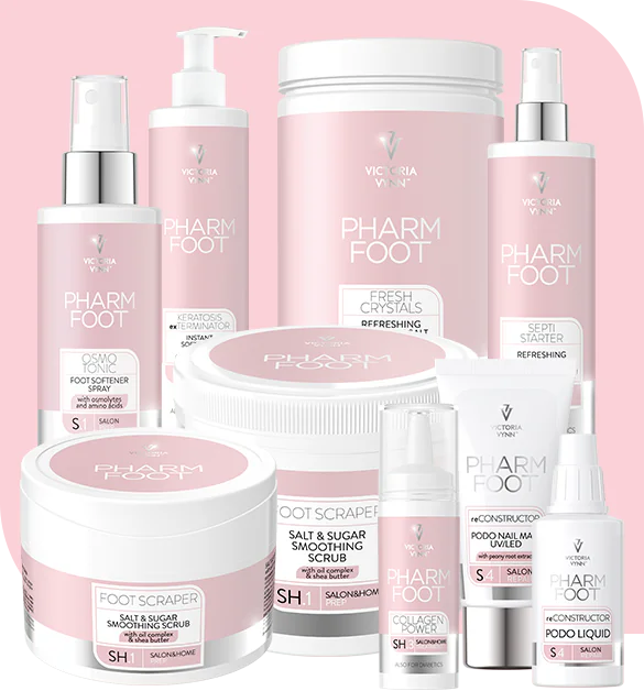 Blagovna znamka PHARM FOOT je postala odgovor na potrebe trga profesionalnih salonskih storitev in strank blagovne znamke VICTORIA VYNN , torej stilistov nohtov. Omogoča jim razvoj, izpopolnjevanje kompetenc in razširitev portfelja storitev, ki jih ponuja klinika z tretmaji za nego stopal.